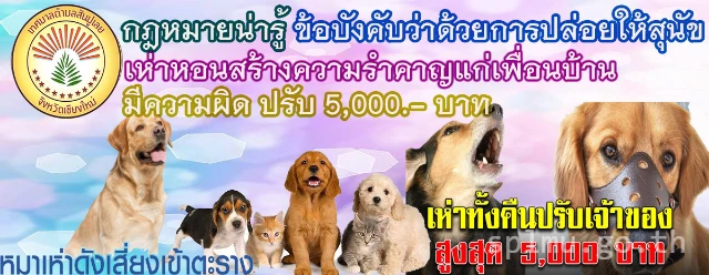 | 8 | กฎหมายน่ารู้:ว่าด้วยเรื่องสุนัขส่งเสียงดังเห่าหอนรบกวนเพื่อนบ้าน มีโทษปรับสูงสุด 5,000.- บาท | 2 พ.ย. 2564 |