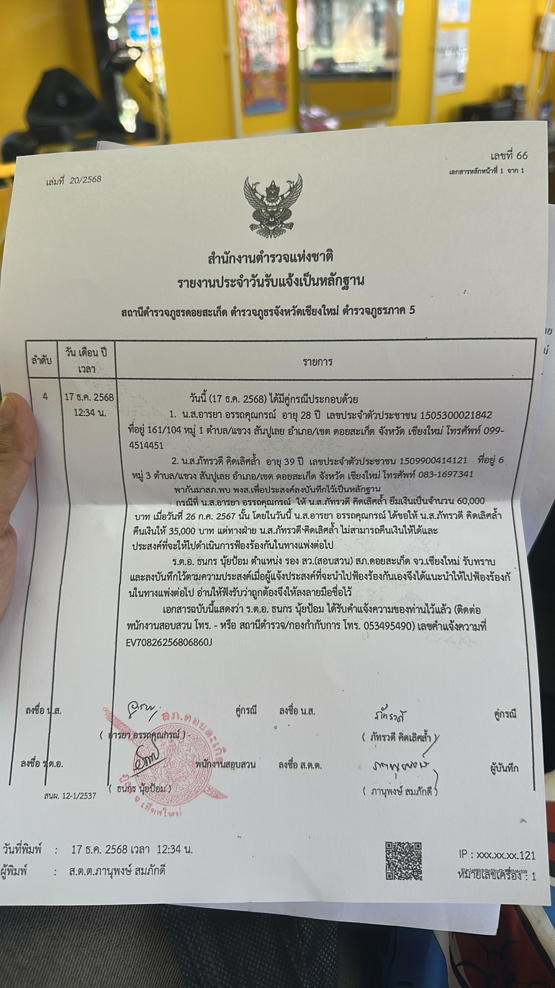 วันที่แจ้ง : 22 ธ.ค. 2568